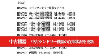 2026/03/25 中古コインランドリー機器 在庫状況を更新